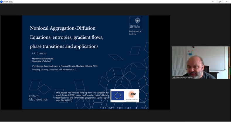2022年11月26日18:00,yl9193永利集团组织的线上国际学术研讨会“动力学、流体力学及反应扩散方程最新进展(Recent Advances in Nonlocal Kinetic, Fluid and Diffusive PDEs)”顺利开幕
