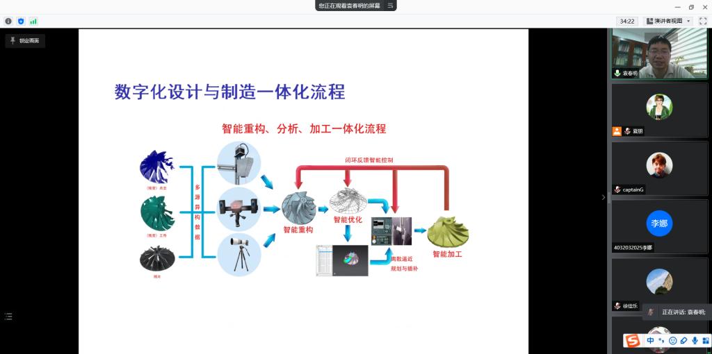 中国科学院数学与系统科学研究院袁春明副研究员主要研究方向包括:数学机械化,微分差分方程的构造性理论与方法,计算机辅助设计与智能制造。在数学机械化方面给出了差分情形的特征列理论与方法,微分差分结式理论,微分周形式理论,拓展了数学机械化方法的适用范围,相关工作曾获ICM/SIGSAM颁发的2011年度杰出论文奖;在数字化设计与智能制造方面给出了多种实用约束下的时间最优插补算法,相关算法成功嵌入国产数控系统“蓝天数控”中,并成功应用于广西玉柴集团的数字化无模成型机的升级改造,在保持原有硬件不变的情况下加工效率提高40%以上。本次报告题目是《基于运动学约束的五轴机床路径规划与最优速度规划》,数控加工中的路径规划与最优插补是计算机辅助制造和加工的核心问题。袁春明副研究员介绍针对三角网格的曲面片的最优分块算法和每个曲面片的路径规划方法。这一方法采用费马螺旋线来设计加工路径,并且结合了路径规划与数控加工,使得得到的曲面片数量更少且利于数控加工。针对五轴数控的样条路径,给出了全局误差可控的时间最优速度规划算法,所设计的算法在整个加工过程中均满足误差和速度加速度以及加加速度约束,满足“Bang-bang”最优控制。
